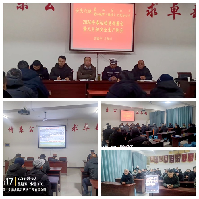 為保障春運期間道路運輸安全,1月30日晚,望江城市(城鄉(xiāng))公交分公司召開2026年春運動員部署會暨元月份安全生產例會。望江縣道路運輸管理服務中心、縣交警大隊蒞臨指導會議?紤]到鄉(xiāng)鎮(zhèn)駐點駕駛員的實際,會議創(chuàng)新采用微信視頻群聊方式,確保了全司60余名駕駛人、安全員等“面對面”參會,實現培訓全面覆蓋。